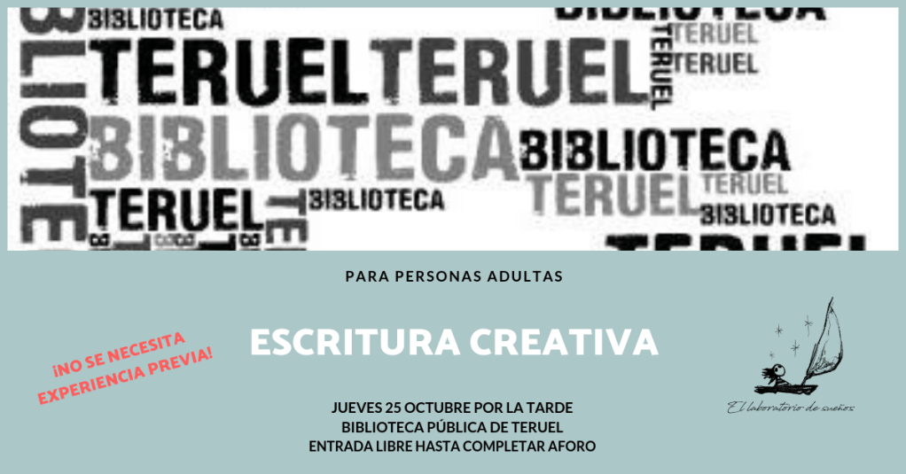 ¡Nos vamos a Teruel! El jueves 25 de octubre, por la tarde, nos llevaremos a la Biblioteca Pública de Teruel uno de nuestros divertidos talleres de escritura creativa, para personas adultas, en el que enseñaremos las herramientas básicas para construir y estructurar un texto narrativo. ¡Corre la voz si estás por la zona! 📢📢