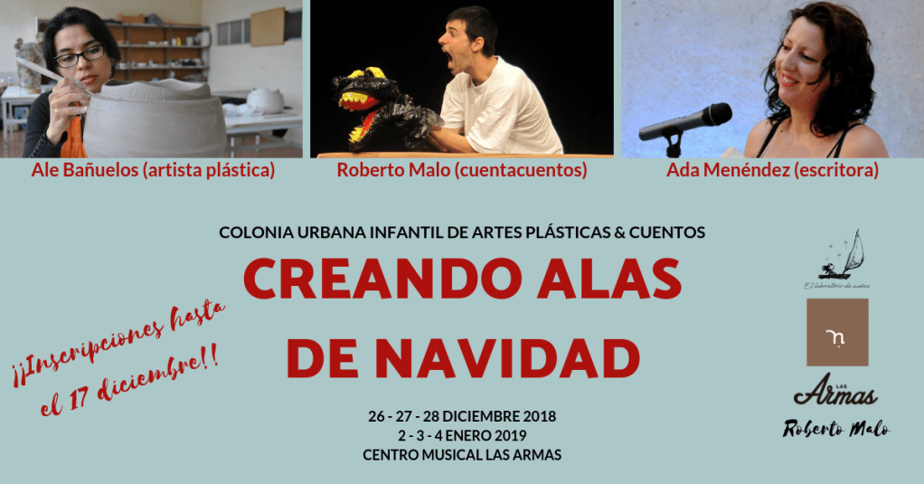 ¡Os presentamos nuestra colonia urbana infantil de Navidad de cuentos & artes plásticas en el Centro Musical Las Armas! Esta colonia está organizada, coordinada e impartida por los siguientes artistas: