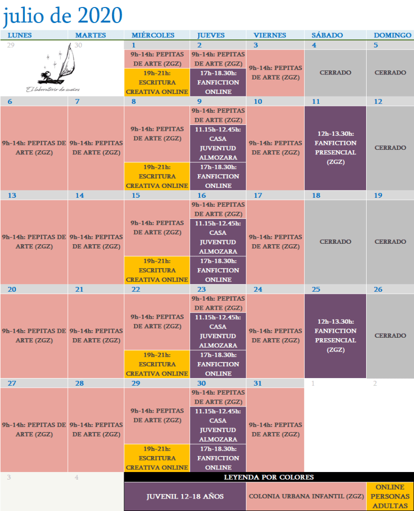 Durante este mes de julio, y hasta que finalicemos las Colonias Infantiles que estamos organizando en Movera, suspendemos temporalmente los talleres presenciales para personas adultas en nuestra aula de Zaragoza (los retomaremos en agosto y/o septiembre). Pero continuaremos con los talleres ONLINE de los miércoles por las tardes.