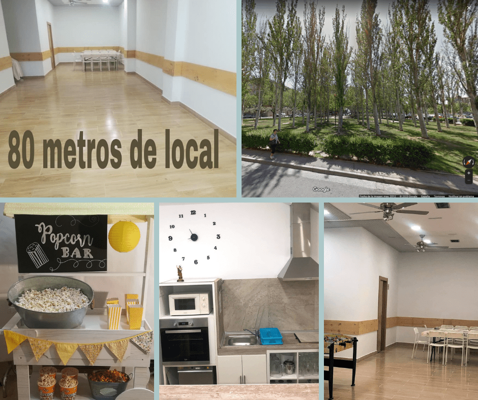 El local está situado justo enfrente de un parque precioso, así que aprovecharemos las tardes, en las que el clima sea agradable, para realizar juegos y cuentacuentos al aire libre. Por otra parte, el local es diáfano, amplio (80 metros cuadrados) y muy espacioso, de forma que podremos garantizar las distancias de seguridad entre peques, tanto cuando estén trabajando en las mesas como cuando estemos jugando de pie. El aula está equipada con cocina completa (para los talleres de galletas, pizzas…), equipos de imagen y sonido, zona para relax-juegos, aseos para personas con diversidad, botiquín y todo aquello necesario para unas extraescolares divertidas y seguras.